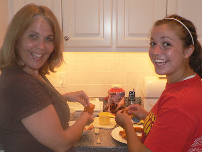 Carley, Angela, and I making cheese rolls